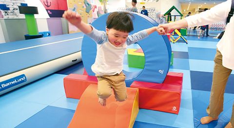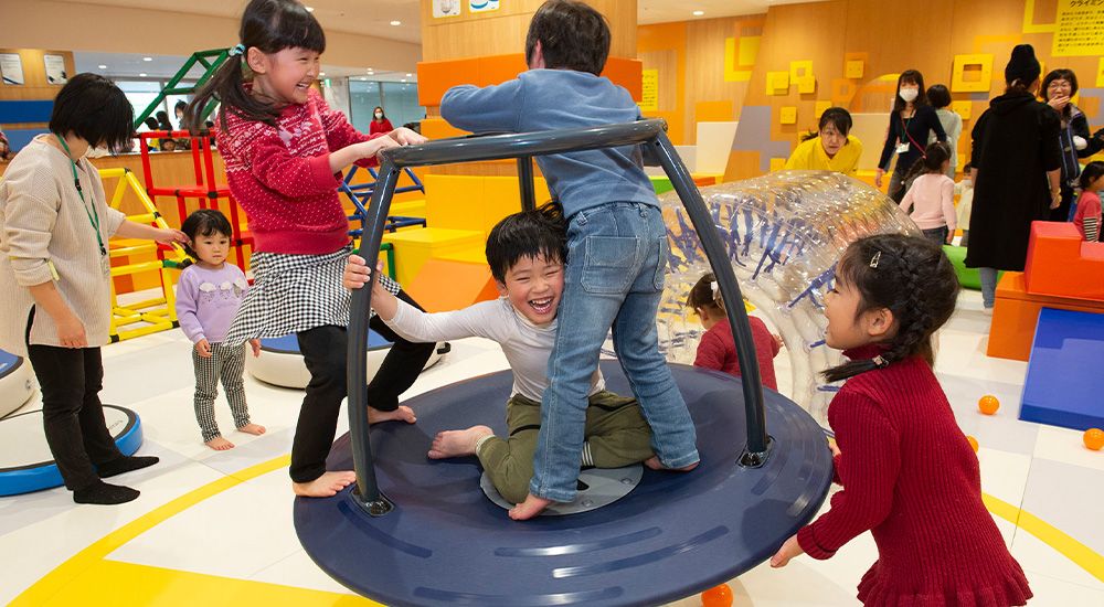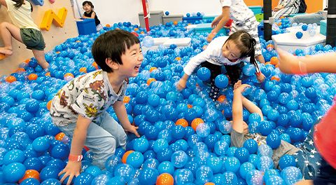 ムツミが興味を持ったのは場内にある遊び場「モーヴィ浜名湖」。ブロックモジュールやボールプールなど、子どもたちが思いっきり体を動かして遊べる遊具がいっぱい!