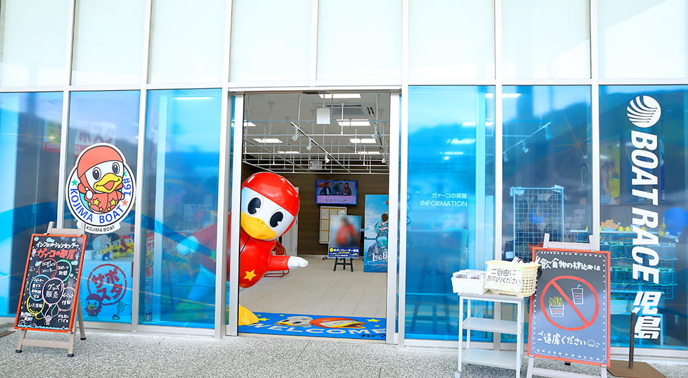 児島を思いっきり楽しむための情報は、インフォメーション&お土産の「ガァ〜コの部屋」で聞いて見ましょう。女性スタッフ“ピース姫”が、食事の場所、施設の案内から、舟券の買い方、出走表の見方まで丁寧に教えてくれます。初めての方こそぜひ寄ってみてくださいね!